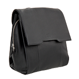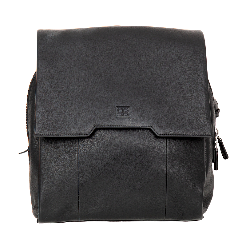 Стильный чёрный рюкзак из натуральной кожи от бренда Sergio Belotti. Внутри три вместительных отделений, два из которых закрываются клапаном на магнитную кнопку, Между ними находится отделение которое можно закрыть на молнию, также в этом отделении один карман на молнии и два для документов. Рюкзак закрывается широким клапаном на магнитную кнопку, оснащён верхней ручкой и кожаными регулируемыми плечевыми лямками. Цвет фурнитуры - серебро. Размеры: 30 х 28 х 14 см.