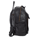Стильный чёрный рюкзак из натуральной кожи от бренда Gianni Conti. Внутри одно большое отделение, в котором карман на молнии, карман на липучке, два кармашка для мелких предметов. Снаружи на передней стенке сквозной карман на двух молниях, на задней стенке карман на молнии. По бокам карманы для быстрого доступа. Рюкзак закрывается на двустороннюю молнию. Оснащён верхней ручкой и кожаными регулируемыми плечевыми лямками.