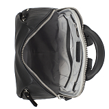 Стильный чёрный рюкзак из натуральной кожи от бренда Gianni Conti. Внутри одно большое отделение, в котором карман на молнии, карман для мелких предметов и держатель для авторучки. Снаружи на лицевой стороне два боковых кармана на молнии, на задней стенке карман на молнии. Рюкзак закрывается на молнию, оснащён верхней ручкой и кожаными регулируемыми плечевыми лямками. Цвет фурнитуры - серебро.