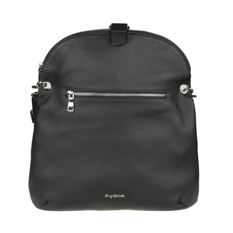 Сумка-рюкзак закрывается на молнию. Внутри отдел, в котором карман на молнии, два кармашка для мелких предметов. Снаружи на передней и задней стенках карман на молнии. Оснащена съемным регулируемым плечевым ремнем на карабинах