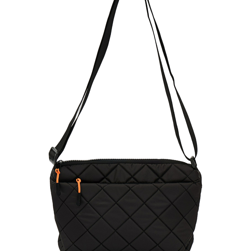 Сумка женская стёганая кросс-боди из качественного текстиля от ANTAN маленького размера станет незаменимой вещью в поездках, повседневных рабочих и домашних хлопотах. Миниатюрная женская сумочка через плечо черного цвета станет изюминкой Вашего женского гардероба для повседневной носки с любимыми джинсами и футболкой или для путешествий. Женская сумка кросс боди изготовлена из качественного текстиля, которая сохранит первоначальный вид на протяжении долгого времени в условиях каждодневной носки. Сумку на плечо легко чистить. Маленькая кросс-боди сумка оснащена внутренним карманом на молнии, наружным кармашком на молнии для телефона, а также регулируемым ремешком. Сумка через плечо женская декорирована яркой подкладкой оранжевого цвета. Кроссбоди сумочка закрывается на молнию. Размер 15х26х11 см (ВхШхГ).