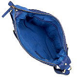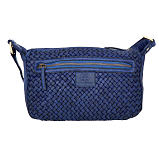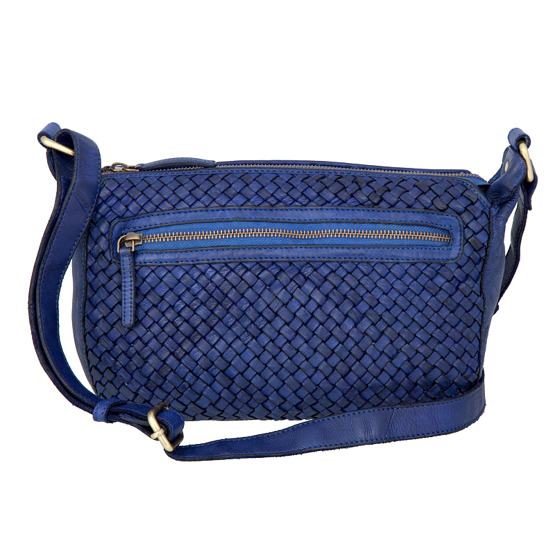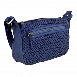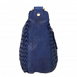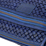 Женская синяя плетёная сумка через плечо от итальянского бренда Sergio Belotti. Выполнена из натуральной кожи с эффектом потёртости, что придаёт изделию винтажный вид. Внутри одно просторное отделение, карман для документов на молнии и один открытый карман. На лицевой и внутренней сторонах карманы на молниях. Оснащена кожаным регулируемым плечевым ремнём, что позволяет носить сумку как на плече, так и через плечо. Фурнитура - патинированная латунь. Размеры: 18 х 26,5 х 8 см.