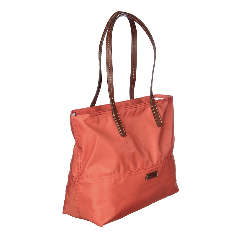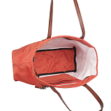Нейлоновая сумка-шоппер. Внутри одно основное отделение, карман для документов на молнии и один открытый карман. Снаружи на задней стенке карман на молнии. Оснащена удлинёнными ручками для ношения на плече. Сумка закрывается на молнию.