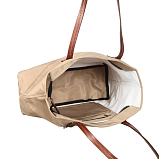 Нейлоновая сумка-шоппер. Внутри одно основное отделение, карман для документов на молнии и один открытый карман. Снаружи на задней стенке карман на молнии. Оснащена удлинёнными ручками для ношения на плече. Сумка закрывается на молнию.