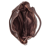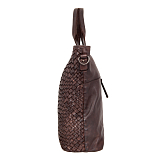 Плетёная женская коричневая сумка Gianni Conti. Выполнена из натуральной мягкой кожи с эффектом потёртости, что придаёт изделию винтажный вид. Центральное отделение закрывается на молнию. Внутри практичные карманы для эффективной организации пространства. Снаружи на задней стенке карман на молнии. Оснащена регулируемым плечевым ремнём, что позволяет носить сумку как на плече, так и через плечо. Размеры: 33 х 36 х 14.5 см.