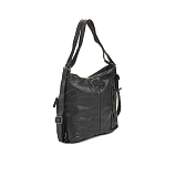 Сумка из натуральной кожи черного цвета, закрывается на молнию. Внутри один отдел, в котором, кармашек для телефона, карман для мелких предметов, карман для документов на молнии. На передней стенке два кармана на молнии. Снаружи на задней стенке карман на молнии. Оснащена регулируемым плечевым ремнём.