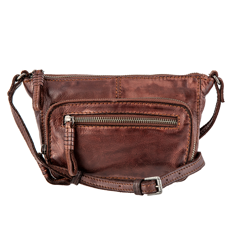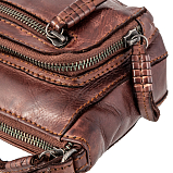 Сумка выполнена из натуральной мытой кожи с эффектом потёртости, что придаёт изделию винтажный вид. Внутри одно отделение, 2 кармашка для мелких предметов, карман для документов на молнии. На лицевой стенке 2 кармашка быстрого доступа на молнии. Оснащена регулируемым плечевым ремнём. Размеры: 15 х 20 х 5 см.