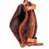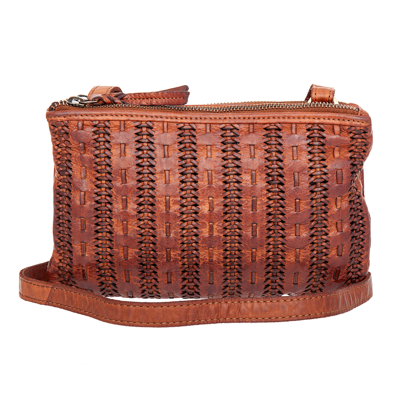 Женская светло-коричневая плетёная сумка от итальянского бренда Gianni Conti, из натуральной кожи с эффектом потёртости, что придаёт изделию винтажный вид. Состоит из трех отделений, внутри карман для документов на молнии и открытый карман для мелких предметов. На задней стороне продольный карман на молнии. Сумка закрывается на две молнии, и оснащена регулируемым плечевым ремнём, что позволяет носить сумку, как на плече, так и через плечо. Фурнитура - патинированная латунь. Размеры: 14 х 23 х 5 см.