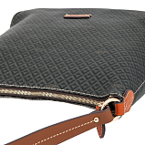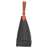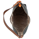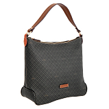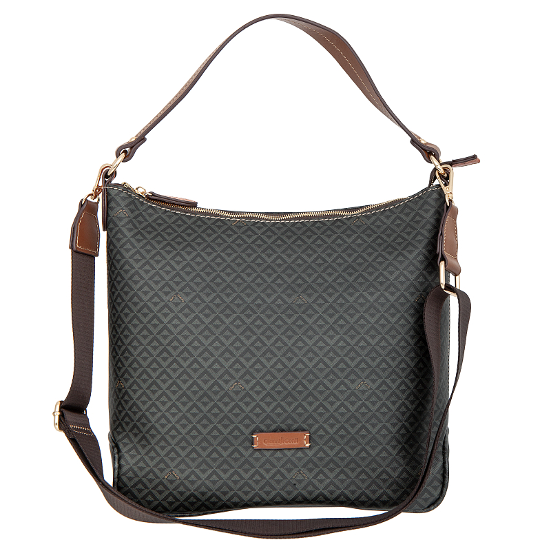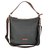 Женская текстильная сумка с фрагментами из натуральной кожи. Закрывается на молнию. Внутри одно вместительное отделение, два кармашка для мелких предметов и карман для документов на молнии. Оснащена съемным регулируемым плечевым ремнем на карабинах. Цвет фурнитуры - золото. Товар упакован в фирменный мешок-пыльник.