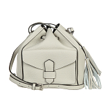 Стильная сумка-кисет из натуральной кожи зернистой фактуры. Закрывается на завязки. украшенные декоративными кистями. Внутри съёмное отделение на молнии. Снаружи на лицевой стенке карман для мелких предметов. Оснащена съёмным регулируемым плечевым ремнём на карабинах. Товар упакован в подарочную коробку от бренда Sergio Belotti.