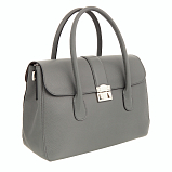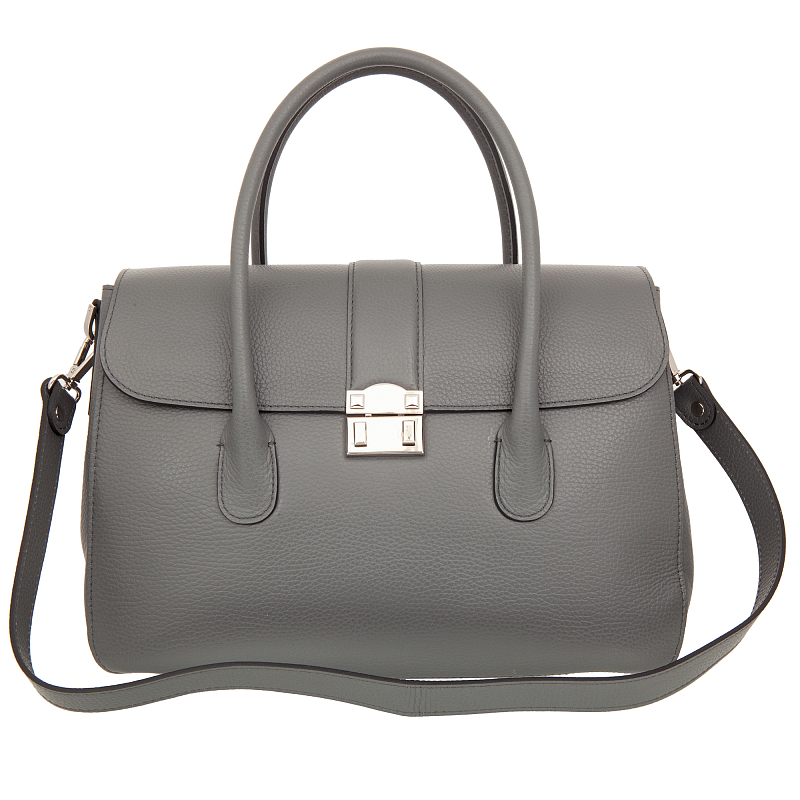 Классическая женская серая кожаная сумка от итальянского бренда Sergio Belotti. Закрывается клапаном на оригинальный замок. Внутри два вместительных отдела, карман на молнии и два открытых кармана. Оснащена двумя кожаными ручками и съёмным плечевым ремнём на карабинах, что позволяет носить сумку в руке или на плече. Цвет фурнитуры - серебро.
