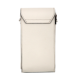 Миниатюрная женская бежевая сумочка из натуральной кожи зернистой фактуры. Внутри два отделения, оснащена съёмным ремешком-цепочкой, закрывается клапаном на магнитную кнопку. Цвет фурнитуры - серебро.