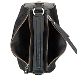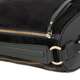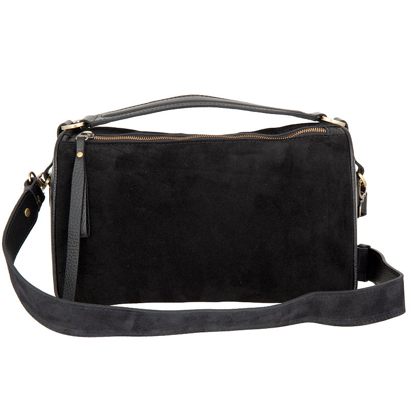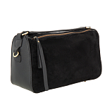 Замшевая женская чёрная сумка от итальянского бренда Sergio Belotti. Выполнена из натуральной комбинированной кожи. Модель состоит из двух независимых отделений на молниях. В одном из отделений расположен карман на молнии. Оснащена верхней ручкой и съёмным регулируемым плечевым ремешком на карабинах, благодаря чему сумку можно носить в руке, на плече или через плечо. Цвет фурнитуры - золото.