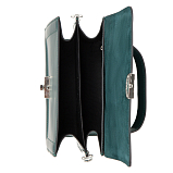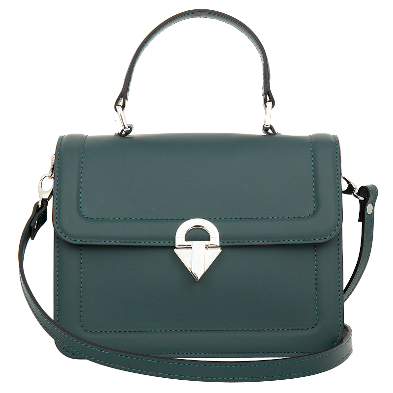 Темно-зеленая женская кожаная сумка от итальянского бренда Sergio Belotti. Закрывается клапаном на оригинальный замок. Внутри два основных отделения и один карман на молнии. Оснащена съемным кожаным регулируемым плечевым ремнём на карабинах. Цвет фурнитуры - серебро.