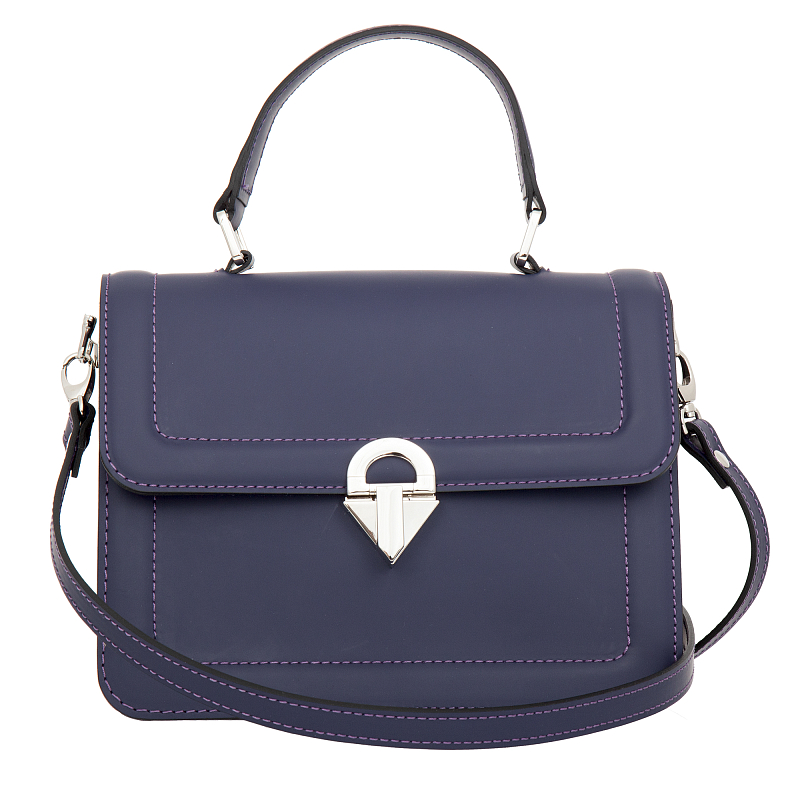 Фиолетовая женская кожаная сумка от итальянского бренда Sergio Belotti. Закрывается клапаном на оригинальный замок. Внутри два основных отделения и один карман на молнии. Оснащена съемным кожаным регулируемым плечевым ремнём на карабинах. Цвет фурнитуры - серебро.