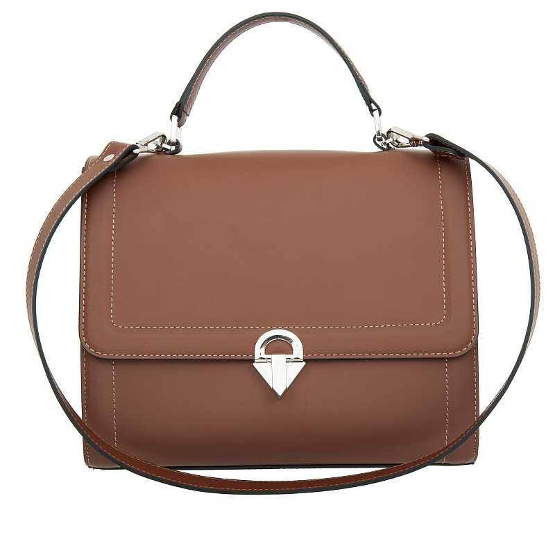 Изысканная сумка закрывается широким клапаном с оригинальным замком.