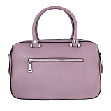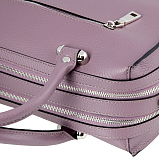 Стильная сиреневая сумка из натуральной кожи зернистой фактуры. Состоит из двух просторных отделений на молниях. В первом отделении два кармашка для мелких предметов, во втором карман для документов на молнии. На внутренней стороне карман на молнии. Оснащена кожаными ручками и дополнительным регулируемым плечевым ремнём на карабинах. Размеры: 21 х 30 х 12 см.