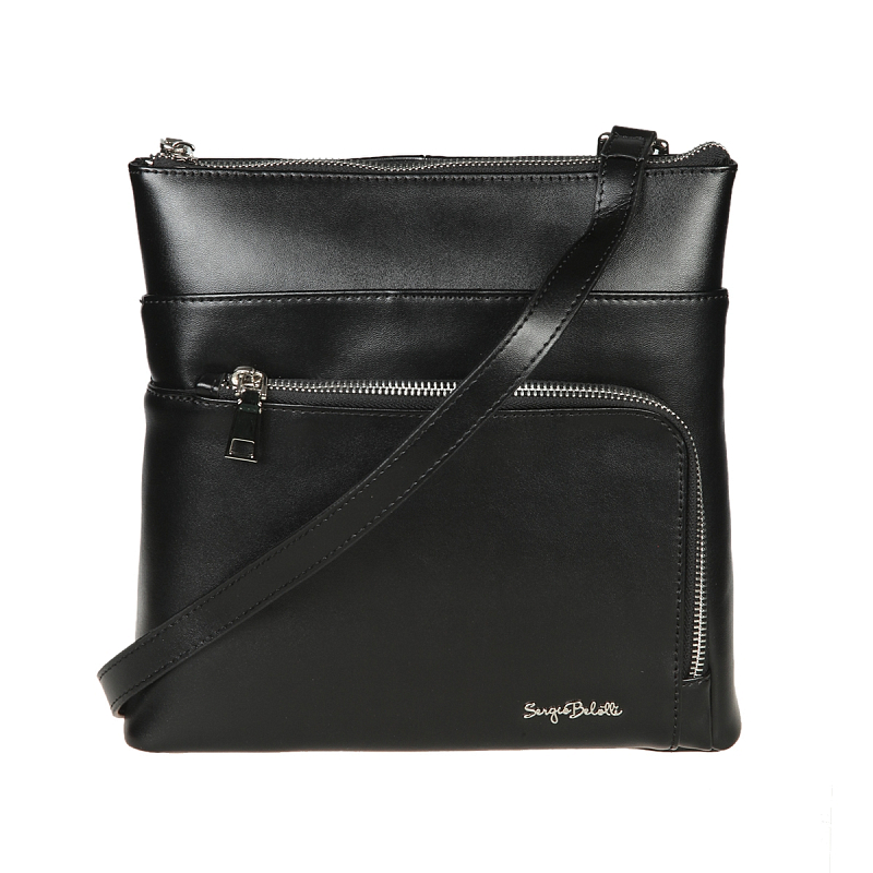 Сумка закрывается на молнию. Внутри один основной отдел, карман для документов на молнии, два кармашка для мелких предметов. С внешней стороны на передней стенке отделение на магнитной кнопке и карман на молнии, на задней стенке карман на молнии. Оснащена регулируемым плечевым ремнём