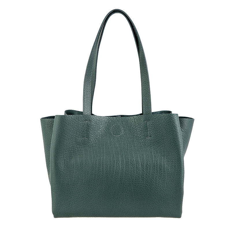 Стильная вместительная сумка из натуральной кожи зернистой фактуры. Состоит из трёх просторых отделений, среднее на молнии, боковые на магнитных кнопках. Внутри основного отделения карман для документов на молнии и два открытых кармашка для мелких предметов. Оснащена кожаными плечевыми ручками. Размеры: 25 х 31 х 18 см.