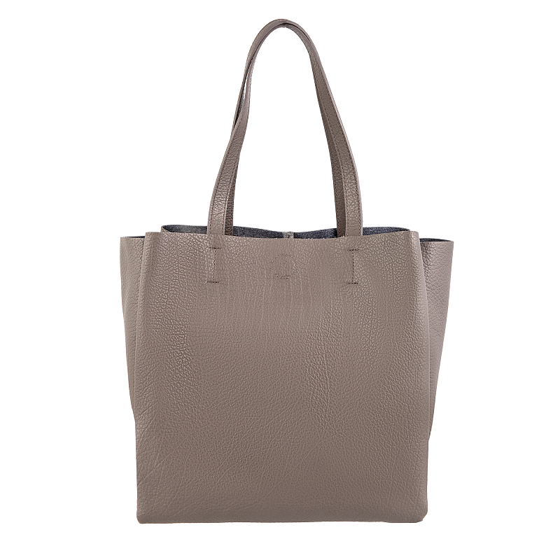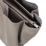 Стильная женская сумка-тоут из натуральной кожи зернистой фактуры. Состоит из трёх независимых отделений, среднее на молнии, крайние на магнитных кнопках. Внутри среднего отделения два открытых кармашка и карман на молнии. Оснащена двумя удлинёнными кожаными ручками.