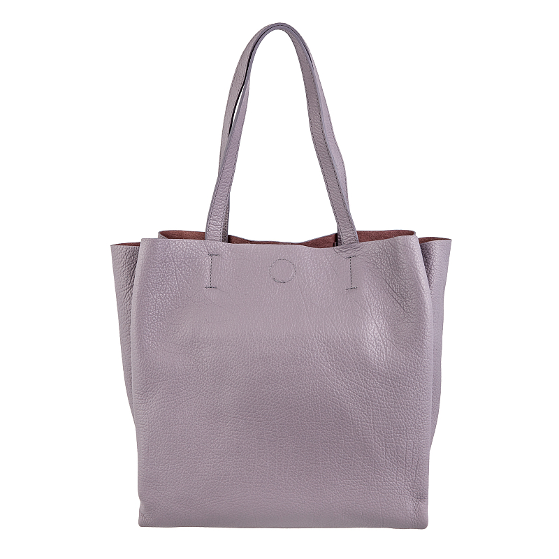 Стильная женская сумка-тоут из натуральной кожи зернистой фактуры. Состоит из трёх независимых отделений, среднее на молнии, крайние на магнитных кнопках. Внутри среднего отделения два открытых кармашка и карман на молнии. Оснащена двумя удлинёнными кожаными ручками.