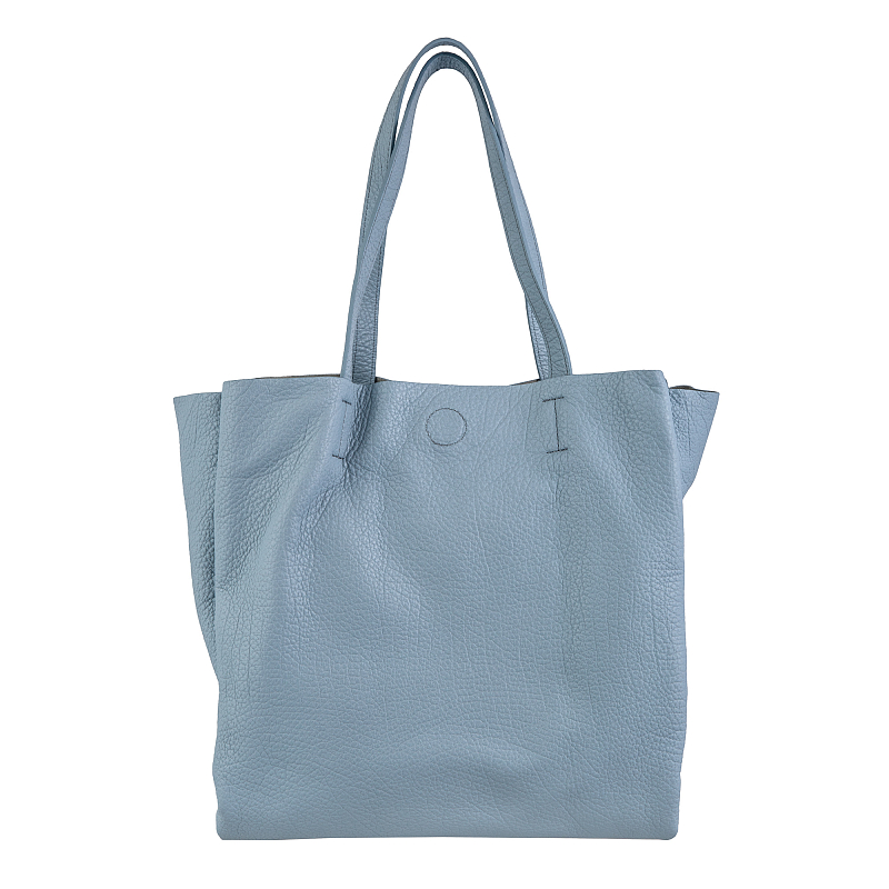 Стильная женская сумка-тоут из натуральной кожи зернистой фактуры. Состоит из трёх независимых отделений, среднее на молнии, крайние на магнитных кнопках. Внутри среднего отделения два открытых кармашка и карман на молнии. Оснащена двумя удлинёнными кожаными ручками.