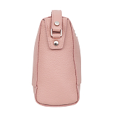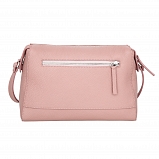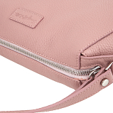 Женская розовая сумка из натуральной кожи зернистой фактуры. Закрывается на молнию. Внутри одно вместительное отделение, два открытых накладных кармана и карман для документов на молнии. С внешней стороны на задней стенке карман на молнии. Оснащена кожаным регулируемым плечевым ремнём. Вмещает формат А5. Фурнитура под серебро.