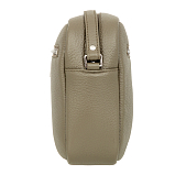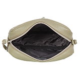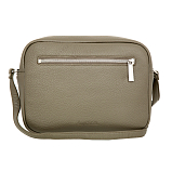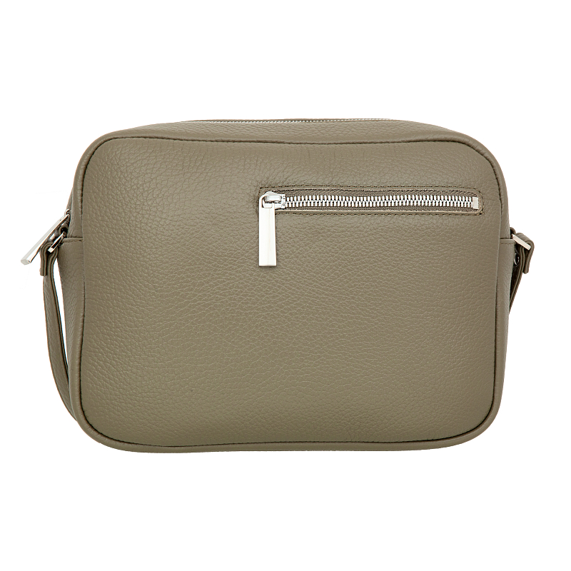 Стильная зелёная сумка на плечо из натуральной кожи зернистой фактуры. Закрывается на молнию. Внутри одно просторное отделение и карман для документов на молнии. Снаружи на лицевой и тыльной стенках карманы на молниях. Оснащена регулируемым плечевым ремнём. Фурнитура под серебро. В комплекте мешок-пыльник.