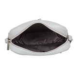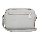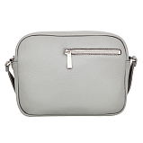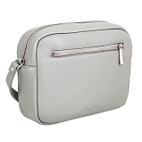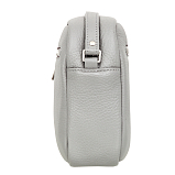 Стильная серая сумка на плечо из натуральной кожи зернистой фактуры. Закрывается на молнию. Внутри одно просторное отделение и карман для документов на молнии. Снаружи на лицевой и тыльной стенках карманы на молниях. Оснащена регулируемым плечевым ремнём. Фурнитура под серебро. В комплекте мешок-пыльник.