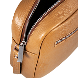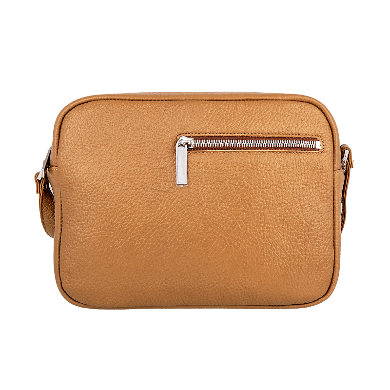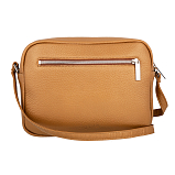 Стильная рыжая сумка на плечо из натуральной кожи зернистой фактуры. Закрывается на молнию. Внутри одно просторное отделение и карман для документов на молнии. Снаружи на лицевой и тыльной стенках карманы на молниях. Оснащена регулируемым плечевым ремнём. Фурнитура под серебро. В комплекте мешок-пыльник.