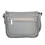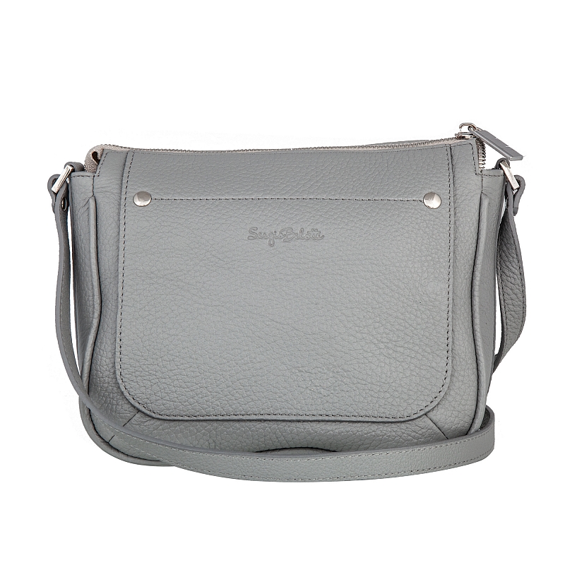 Стильная миниатюрная серая сумочка из натуральной кожи зернистой фактуры. Внутри одно просторное отделение, карман для документов на молнии и два открытых кармашка для мелких предметов. Снаружи на внутренней стороне карман на молнии. Закрывается на молнию, оснащена кожаным регулируемым плечевым ремнём на карабинах, что позволяет носить сумку как на плече, так и через плечо. Фурнитура под серебро. В комплекте мешок-пыльник. Размеры: 17 х 20 х 8 см.