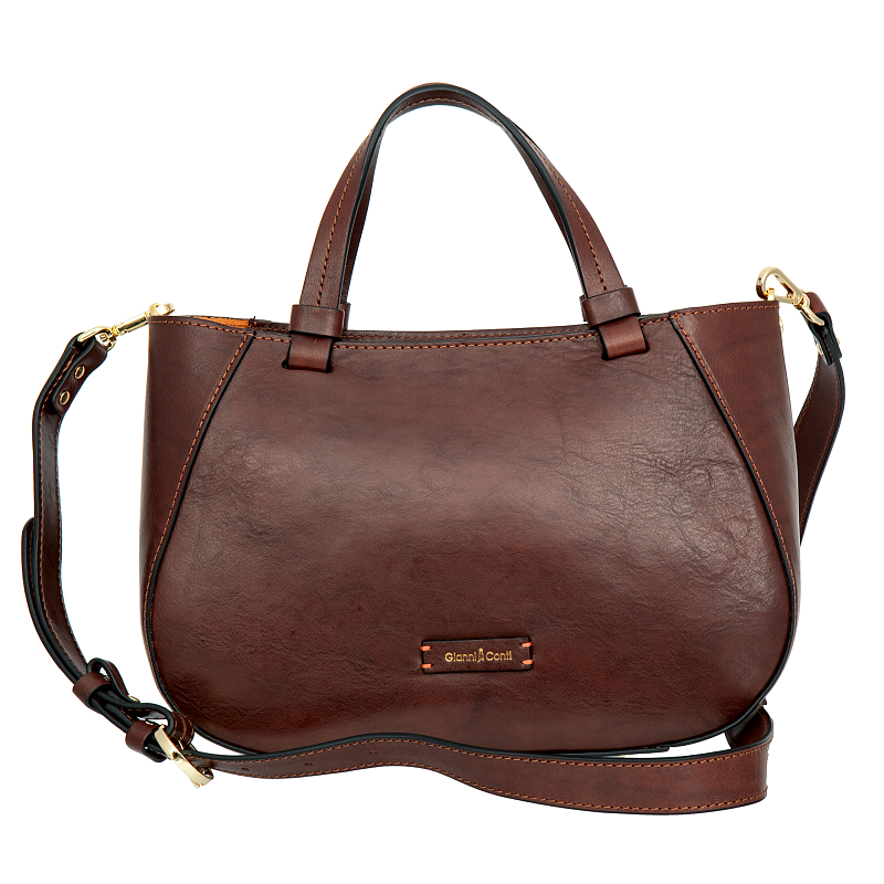 Женская сумка Gianni Conti из натуральной кожи гладкой фактуры. Имеет одно основное отделение на молнии с потайным кармашком на молнии. На внешней стороне сумки также имеется потайной карман на молнии. Сумка вмещает документы формата А4. Цвет фурнитуры – золотой.