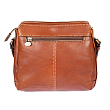 Женская сумка через плечо, выполнена из натуральной кожи. Внутри 3 отделения, 1 карман для документов на молнии, кармашек для мелких предметов и держатель для авторучки. Снаружи на внешней стороне сумки 1 большой плоский карман на магнитной кнопке, с внутренней стороны расположен ещё один карман на молнии. Плечевой ремень регулируется по длине. Размеры: 20 х 23 х 10 см.