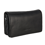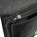 Женская сумка через плечо из натуральной кожи чёрного цвета. Закрывается клапаном на магнитной кнопке. Внутри 3 отделения, одно из них на молнии. На задней стенке карман быстрого доступа на молнии. Оснащена съёмным регулируемым плечевым ремнём на карабинах.