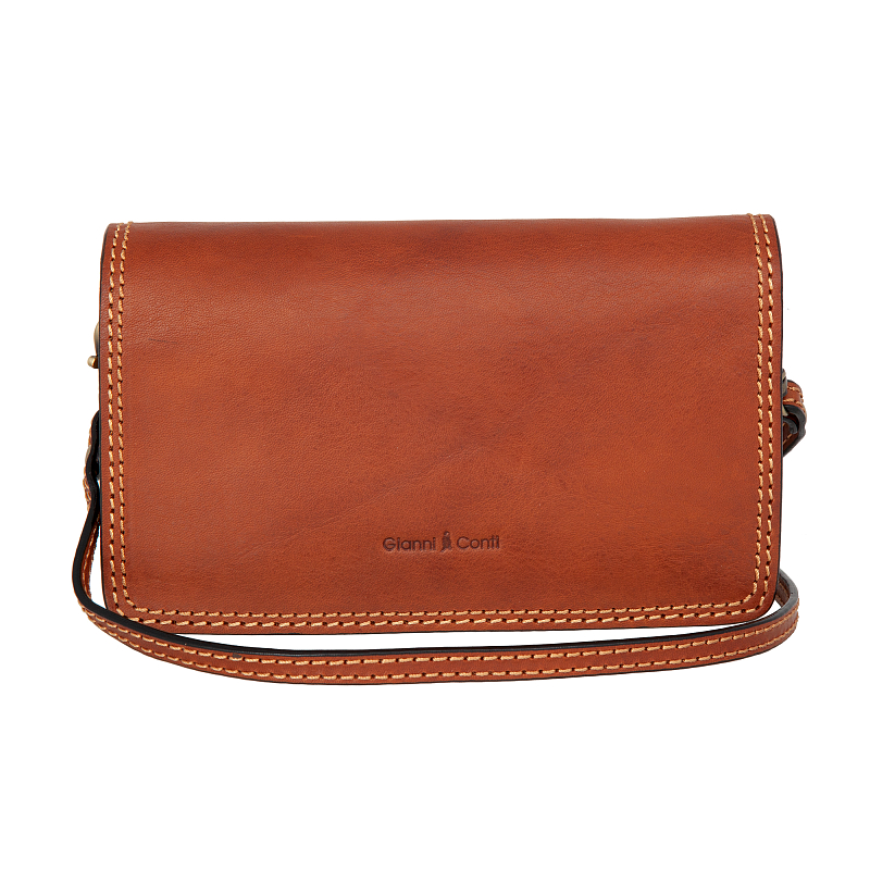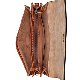 Женская сумка через плечо из натуральной кожи светло-коричневого цвета. Закрывается клапаном на магнитной кнопке. Внутри 3 отделения, одно из них на молнии. На задней стенке карман быстрого доступа на молнии. Оснащена съёмным регулируемым плечевым ремнём на карабинах.