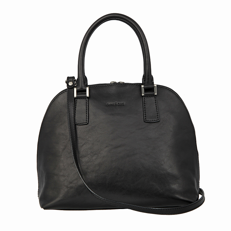 Классическая женская сумка из натуральной кожи чёрного цвета. Закрывается на двухстороннюю молнию. Внутри один вместительный отдел, два кармана на молнии, два кармашка для мелких предметов, держатель для авторучки. Оснащена съёмным регулируемым плечевым ремнём на карабинах.