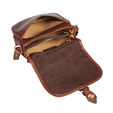 Классическая сумка через плечо из натуральной кожи коричневого цвета. Закрывается клапаном на магнитной кнопке. Внутри два основных отдела, продольный карман на молнии, кармашек для мелких предметов, держатель для авторучки и карман для документов на молнии. На передней стенке открытый накладной карман, на задней стенке карман на молнии. Оснащена регулируемым плечевым ремнём.
