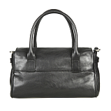 Сумка закрывается клапаном на классическом замке, внутри один отдел, в котором на задней стенке - карман для документов на молнии, на передней стенке - два кармашка для мелких предметов, отделение для авторучек, оснащена съёмным регулируемым плечевым ремнём, замочек с ключом
