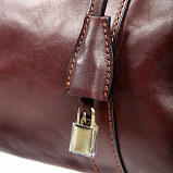 Сумка закрывается клапаном на крутящийся замок, внутри один отдел, в котором: на передней стенке - карман для документов на молнии, на задней стенке - карман на молнии, два кармашка для мелких предметов, кармашек для авторучки, снаружи на задней стенке карман для документов на молнии, оснащена съёмным регулируемым плечевым ремнём, замочек с ключиком