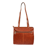 Женская сумка застегивается на молнии, внутри два отдела, в первом отделе два кармана для мелких предметов, во втором отделе карман на молнии,
