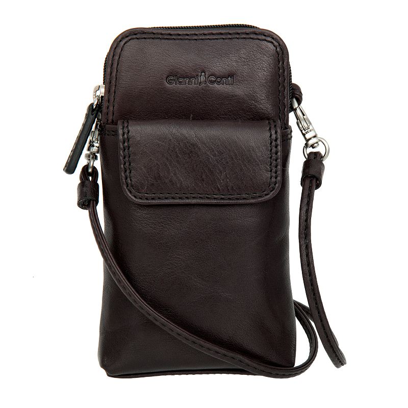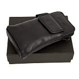 Кожаный чехол - сумка, для сотового телефона. Основной отдел закрывается на молнию. Снаружи на передней стенке карман быстрого доступа на кнопке. Оснащен съёмным плечевым ремнём на карабинах.