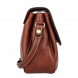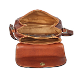 Маленькая сумочка через плечо из натуральной кожи светло-коричневого цвета. Внутри три отделения и карман для документов на молнии. Закрывается клапаном на магнитной кнопке, оснащена плечевым ремешком.