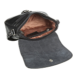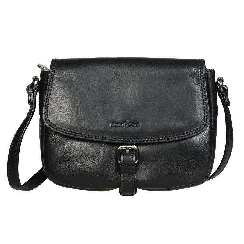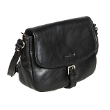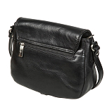 Классическая женская кожаная сумка чёрного цвета от бренда Gianni Conti. Закрывается клапаном на магнитной кнопке и на молнию. Внутри одно основное отделение, внутри которого карман на молнии и кармашек для мелких предметов. Снаружи на лицевой и внутренней сторонах карманы на молниях. Оснащена кожаным регулируемым плечевым ремнём. Цвет фурнитуры - патинированная латунь. В комплекте мешок-пыльник для бережного хранения.