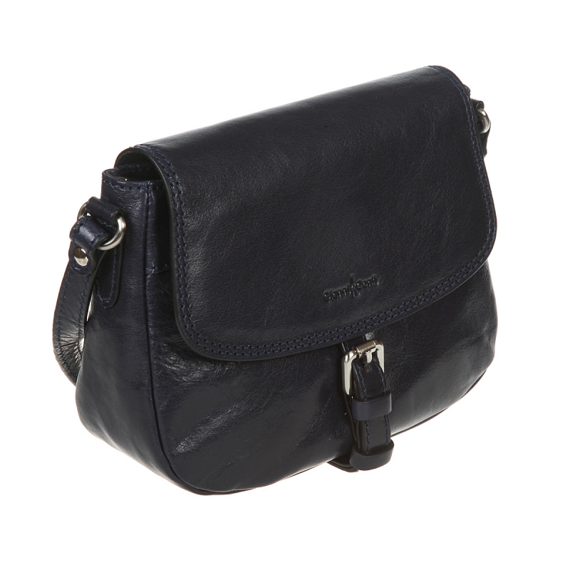 Классическая женская кожаная сумка синего цвета от бренда Gianni Conti. Закрывается клапаном на магнитной кнопке и на молнию. Внутри одно основное отделение, внутри которого карман на молнии и кармашек для мелких предметов. Снаружи на лицевой и внутренней сторонах карманы на молниях. Оснащена кожаным регулируемым плечевым ремнём. Цвет фурнитуры - патинированная латунь. В комплекте мешок-пыльник для бережного хранения.