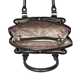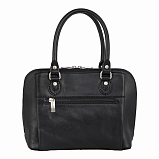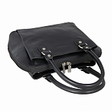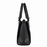 Классическая чёрная сумка из натуральной кожи. Закрывается на двухстороннюю молнию. Внутри два основных отделения, продольный карман на молнии, два кармашка для мелких предметов, держатель для авторучки, карман для документов на молнии. Снаружи два отделения на магнитной кнопке. На задней стенке карман быстрого доступа на молнии. Оснащена съёмным регулируемым плечевым ремнём на карабинах.