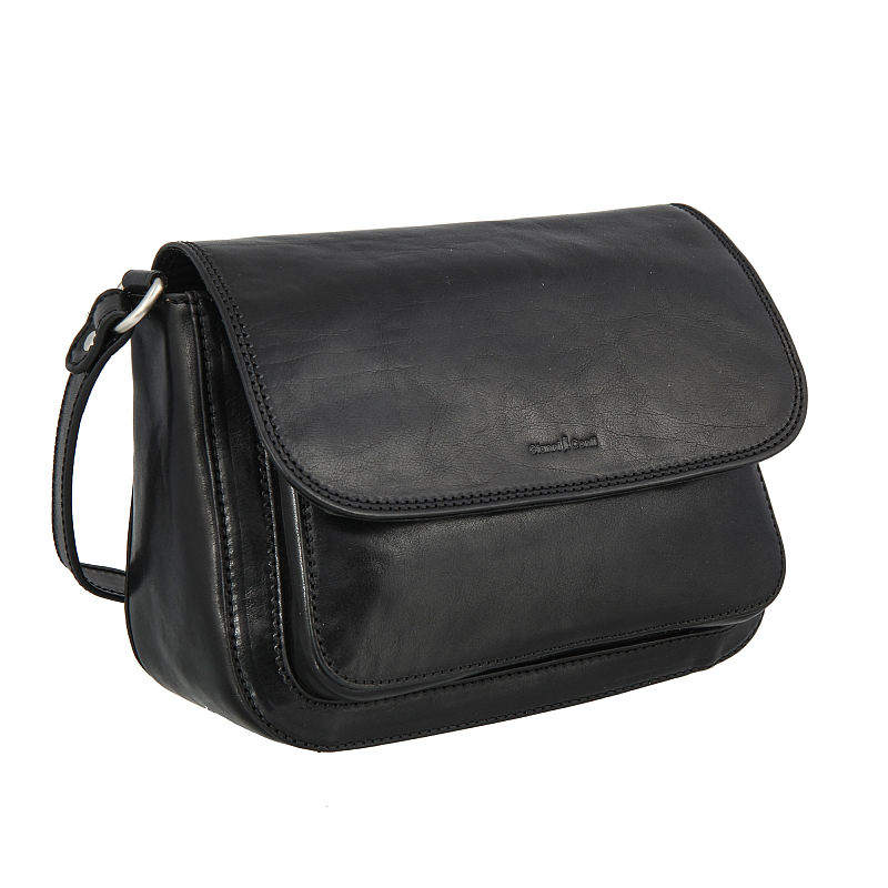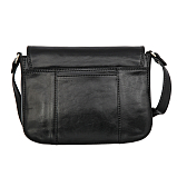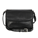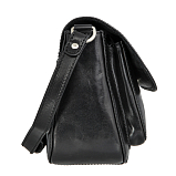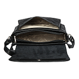 Сумка из натуральной кожи черного цвета. Закрывается клапаном на магнитной кнопке и на молнию. Внутри один основной отдел, в котором, кармашек для мелких предметов, кармашек для авторучки, карман для документов на молнии. Снаружи на передней стенке, под клапаном карман на магнитной кнопке, на задней стенке кармашек. Оснащена регулируемым плечевым ремнём.