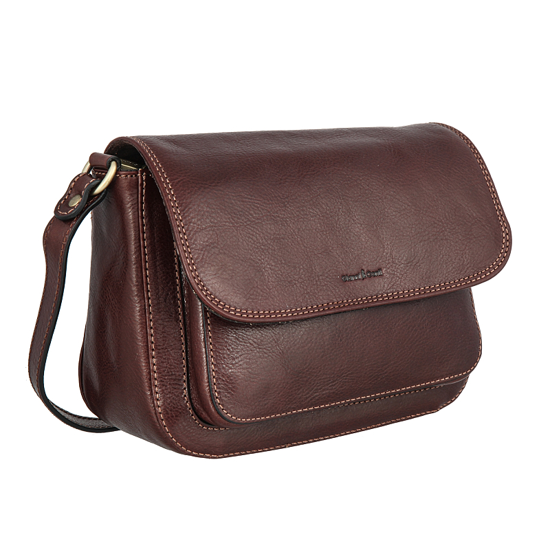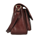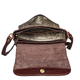 Сумка из натуральной кожи коричневого цвета. Закрывается клапаном на магнитной кнопке и на молнию. Внутри один основной отдел, в котором, кармашек для мелких предметов, кармашек для авторучки, карман для документов на молнии. Снаружи на передней стенке, под клапаном карман на магнитной кнопке, на задней стенке кармашек. Оснащена регулируемым плечевым ремнём.