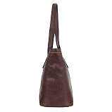 Женская тёмно-коричневая кожаная сумка от итальянского бренда Gianni Conti. Внутри два основных отделения, карман-перегородка на молнии, два кармашка для мелких предметов, держатель для авторучки и карман на молнии. Сумка оснащена двумя удлинёнными кожаными ручками. Закрывается на молнию.