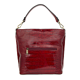 Женская красная кожаная сумка с тиснением под крокодила от бренда Gianni Conti. Кожа Vachetta наилучшего качества, растительного дубления. Внутри одно основное отделение, два кармана на молниях, три открытых кармана и держатель для авторучки. Снаружи на внутренней стороне карман на молнии. Сумка закрывается на молнию, оснащена съёмной удлинённой кожаной ручкой на карабинах и съёмным кожаным регулируемым плечевым ремнём на карабинах, что позволяет носить сумку в руке, на плече и через плечо. Цвет фурнитуры - патинированная латунь. В комплекте мешок-пыльник для бережного хранения. Размеры: 28 х 31 х 13,5 см.