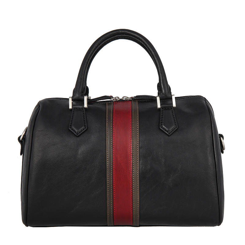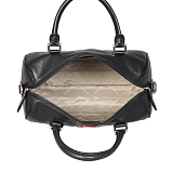 Сумка закрывается на двустороннюю молнию. Внутри в основном отделение, карман для документов на молнии, два кармана для мелких предметов, держатель для авторучки, оснащена съёмным регулируемым плечевым ремнём на карабинах.